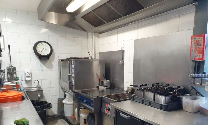 La cuisine professionnelle de 20 m² est aux normes.